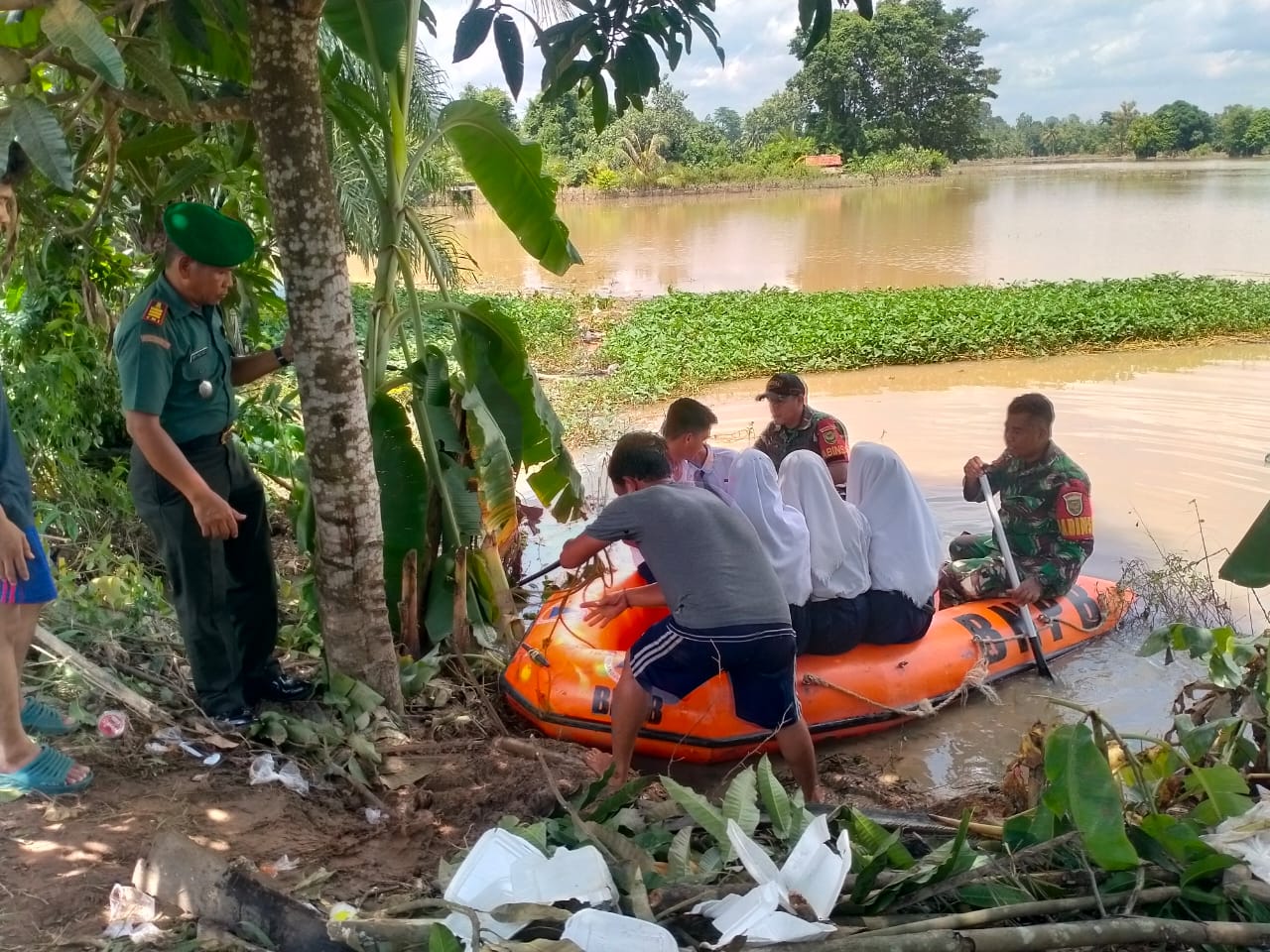 ” Anak sekolah dan pegawai menjadi salah satu prioritas utama menggunakan transportasi darurat (perahu karet) pada jam keberangkatan dan kepulangan anak sekolah serta pegawai menjadi prioritas ,Saya Sudah perintahkan Danramil 02/Prabumulih Kapten Czi Feri agar Babinsa membantu penyebrangan anak – anak sekolah ataupun pegawai dengan menggunakan perahu karet sebagai fasilitas penyeberangan ,” Sebut Komandan Kodim 0404 / Muara Enim Letkol Inf Nugraha. S.H M.I.P.