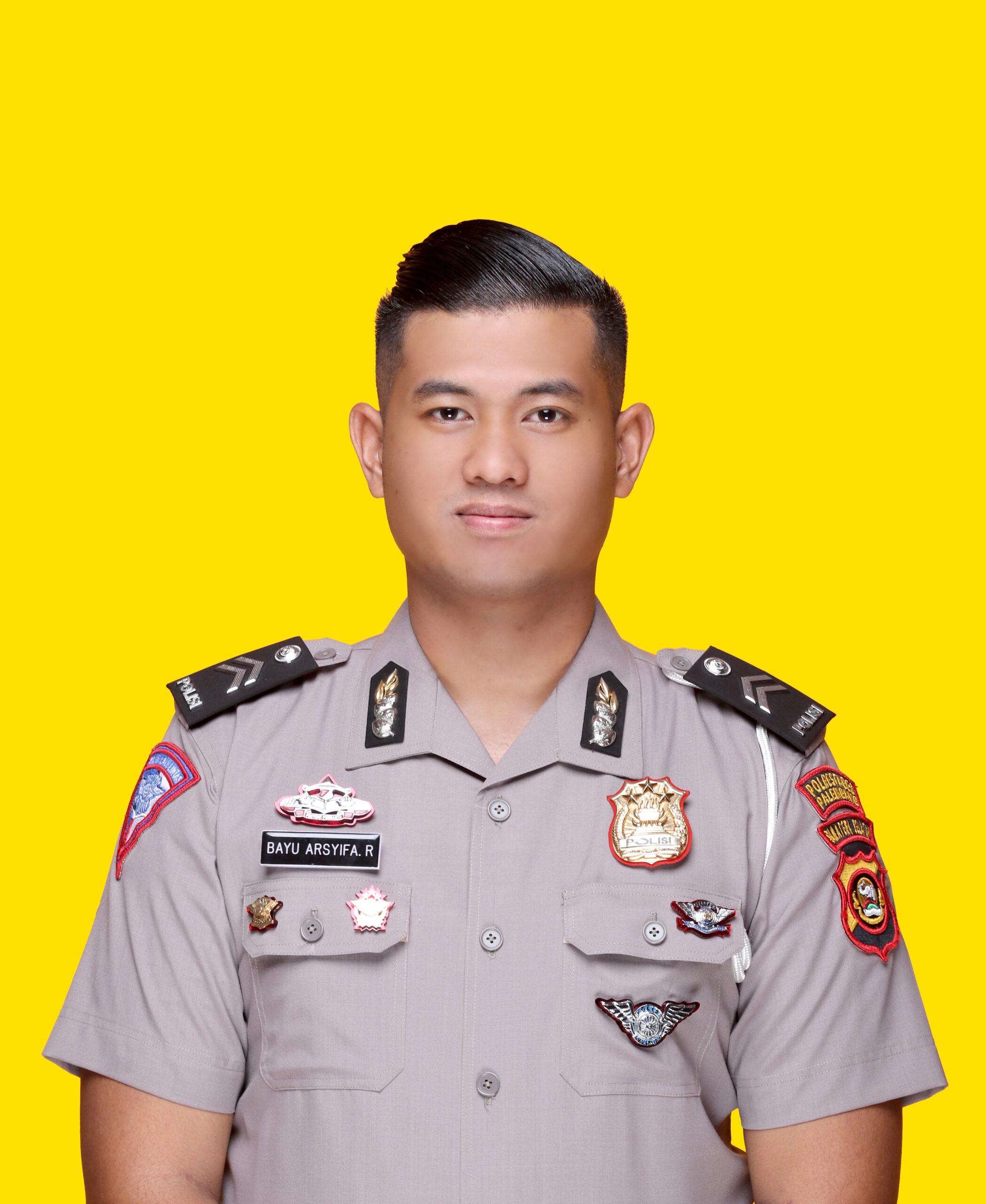 Yang berdinas di Satuan Lalu Lintas (Satlantas) Kepolisian Resor Kota Besar (Polrestabes) Palembang yang diketahui bernama Briptu Bayu Arsyifa Rahmadi SH MH.