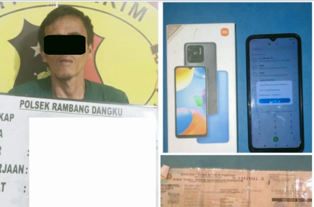 Barang bukti yang berhasil diamankan antara lain adalah satu unit Handphone Redmi 10C dan satu lembar STNK sepeda motor Honda Vario BG 4909 DAJ.