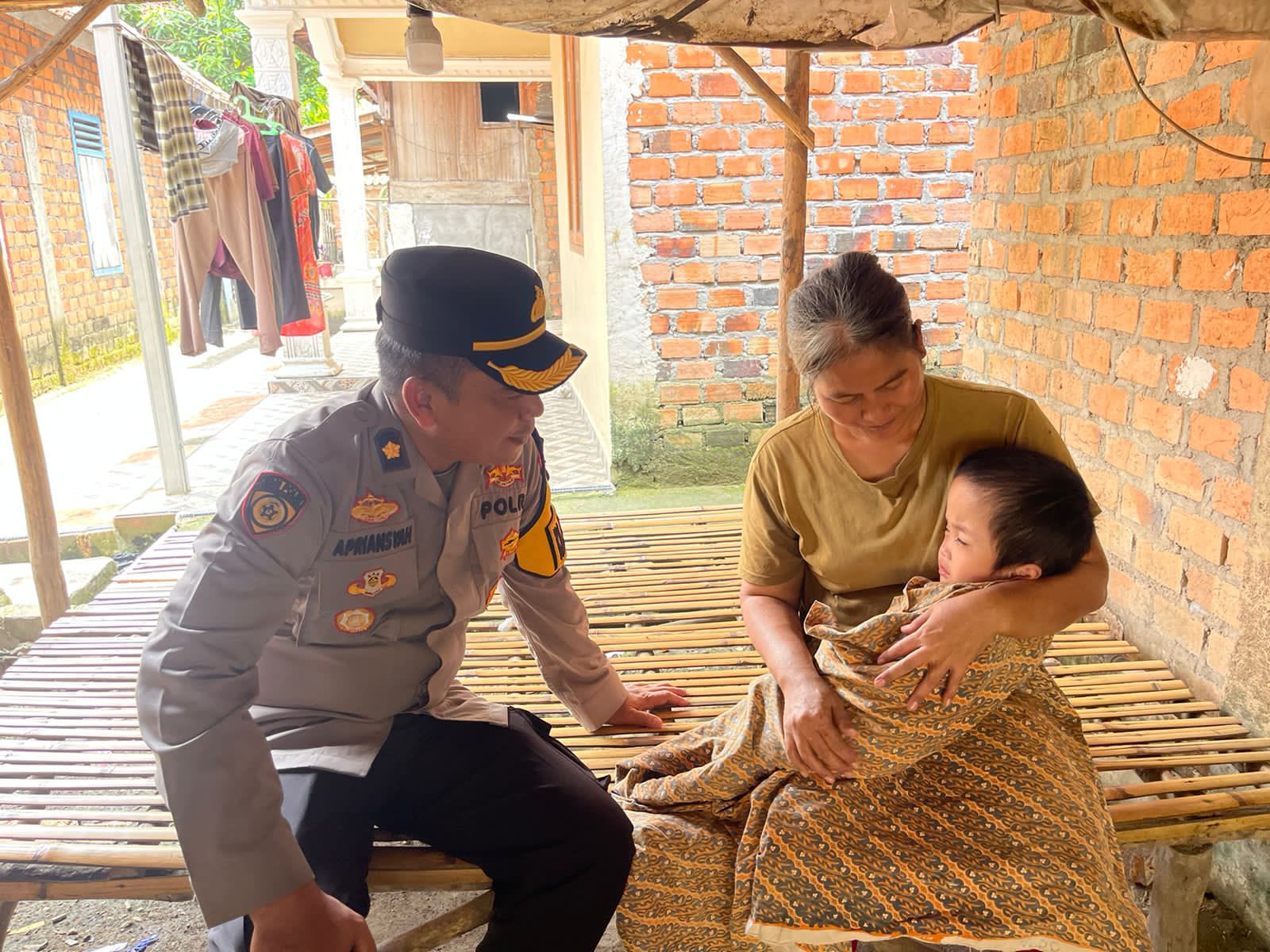 Mewakili Kapolres Muara Enim AKBP Jhoni Eka Putra, SIK, Kabag SDM Polres Muara Enim. Kompol Apriansyah, SH, MSi, beserta personil Bag SDM Polres Muara Enim menyambangi warga bernama Afrenus di Kelurahan Pasar I Kecamatan Muara Enim yang menderita penyakit Hydrosepalus
