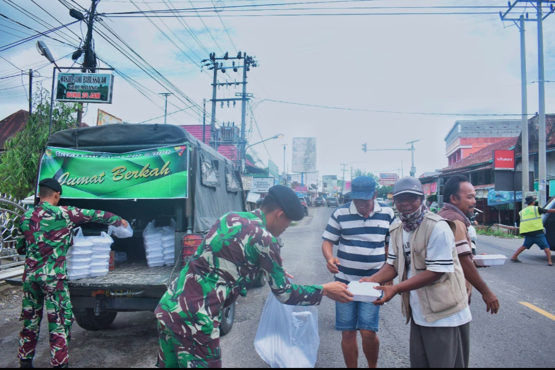 MUARA ENIM|Palnews.id-Berbagi kepada sesama yang membutuhkan dalam mendapatkan barokah serta berkah dari Allah SWT Dihari Jum’at yang sangat berkah tersebut dimanfaatkan oleh Kesatuan TNI-AD Bataliyon Kaveleri Dwi Pangga Ceta Karang Endah Kecamatan Gelumbang Kabupaten Muara Enim, dengan saling berbagi menyalurkan ratusan nasi kotak kepada masyarakat. Jum’at (12/01/2024).