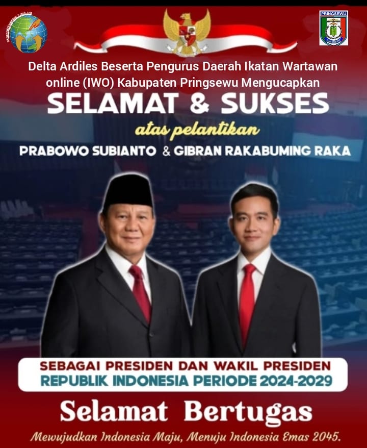 Ikatan Wartawan Online (IWO) mengucapkan selamat bekerja kepada Presiden Prabowo Subianto dan Wakil Presiden Gibran Rakabuming Raka setelah pelantikan keduanya. IWO berharap keduanya dapat menjalankan amanah dengan sebaik-baiknya sesuai dengan UUD 1945.