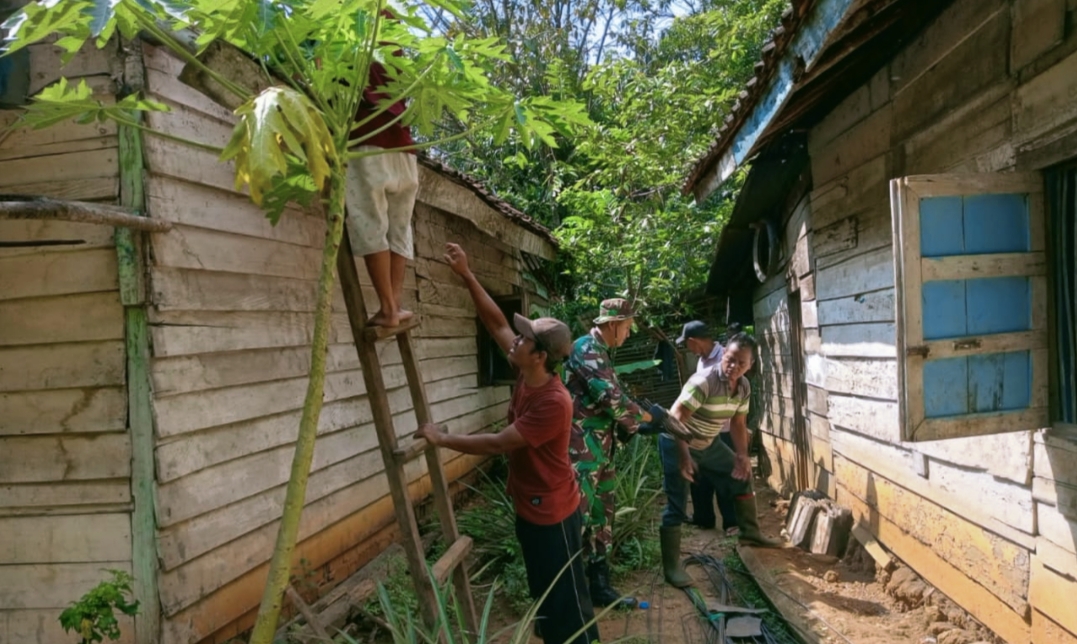 MUARA ENIM|Palnews.id- Dalam rangka Tentara Manunggal Membangun Desa (TMMD.red), Kodim 0404/Muara Enim membantu warga melaksanakan korve pembongkaran salah satu rumah warga didesa Sukomulyo Kecamatan Gunung Megang, Kabupaten Muara Enim Provinsi Sumatera Selatan.