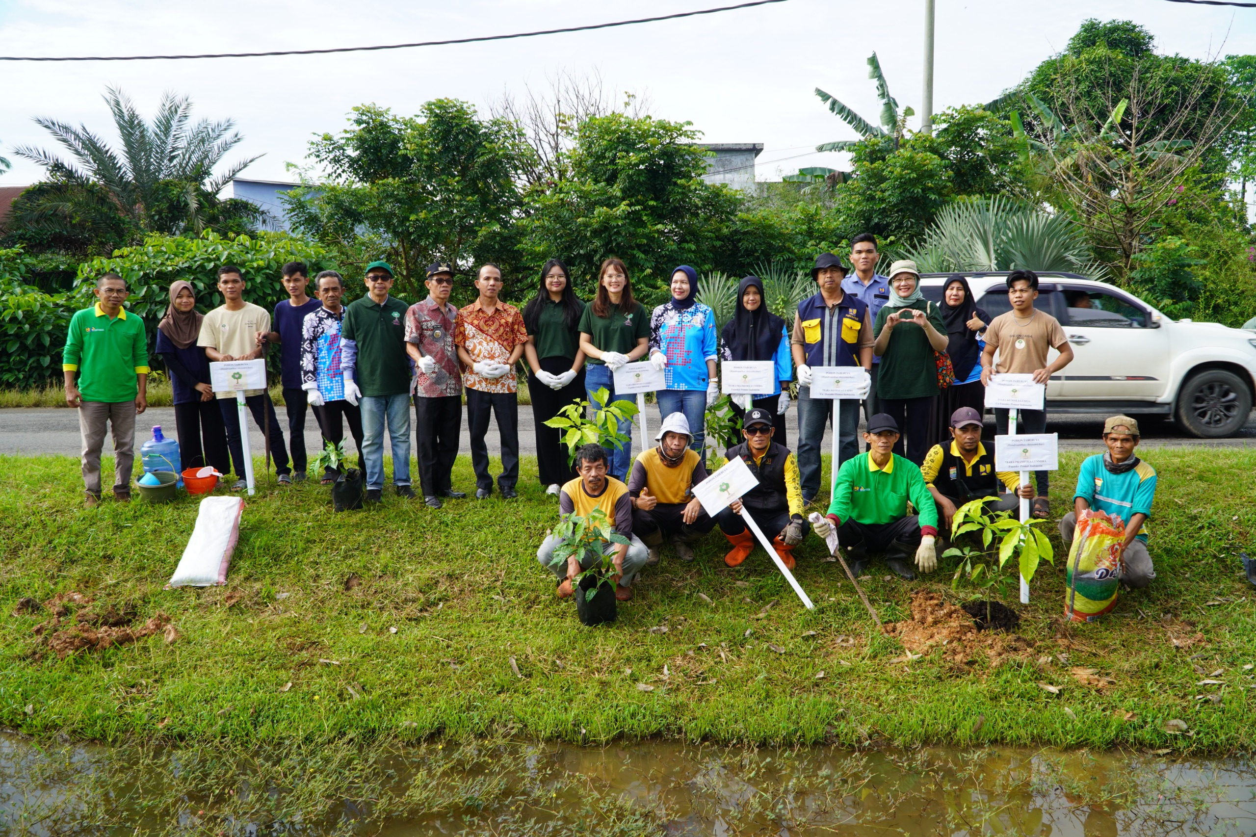 “Alhamdulillah, hari ini kami menerima bantuan bibit tanaman Tabebuya, Pinang, dan Ketapang. Ini merupakan bentuk kepedulian luar biasa dari komunitas Protect Indonesia. Insya Allah, ke depannya kami akan membantu dalam pemeliharaan, pemupukan, dan penyiraman agar pohon-pohon ini dapat tumbuh dengan baik,” jelasnya.
