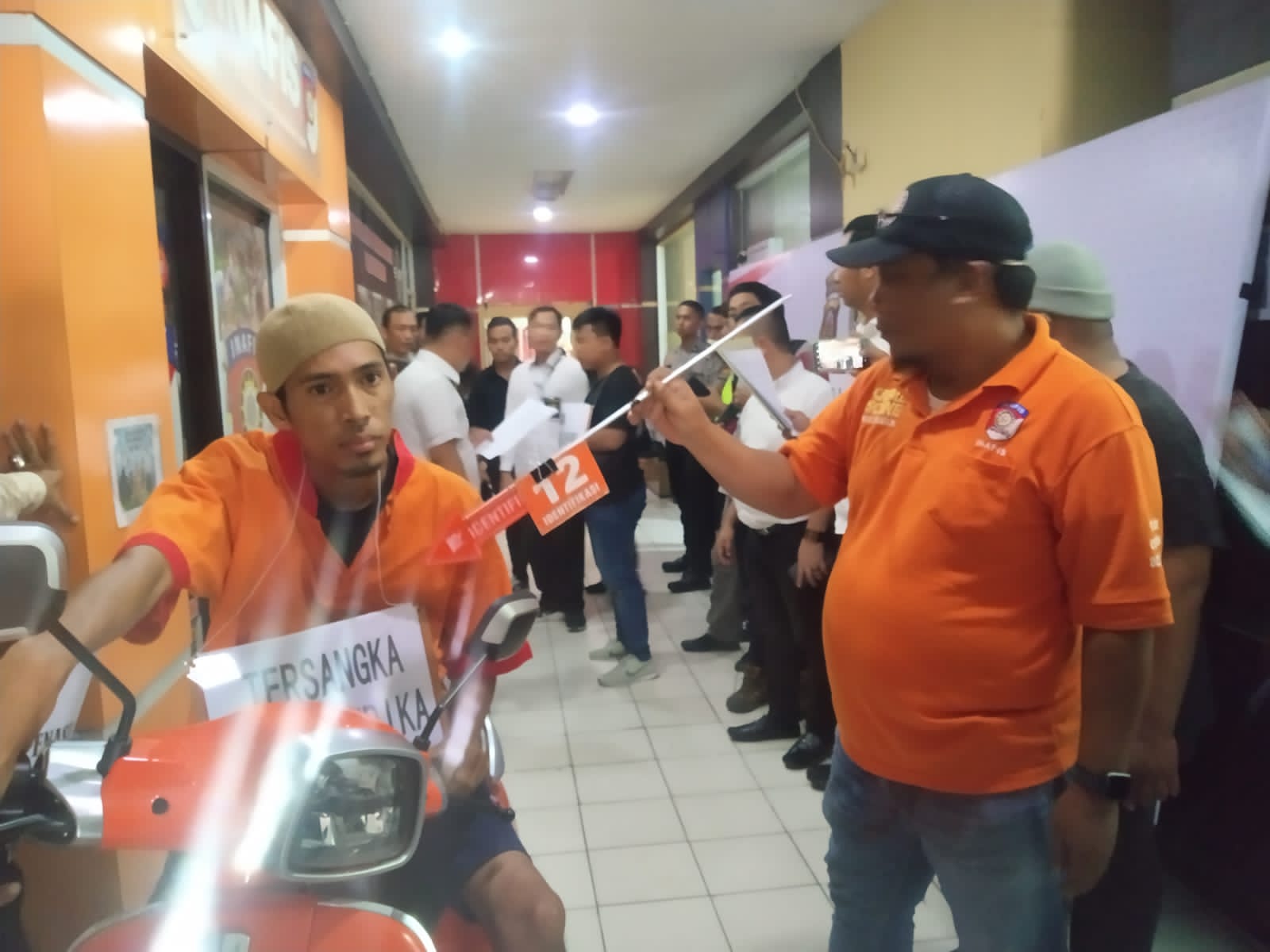 Rekonstruksi tersebut diperankan langsung oleh tersangka Dani Andika dan korban Aguspita, sementara korban Farid (meninggal) diperankan oleh pembantu penyidik, serta saksi Mandalina (adik Aguspita) ini berlangsung di Mapolrestabes Palembang, Rabu (3/1/2024) pagi.