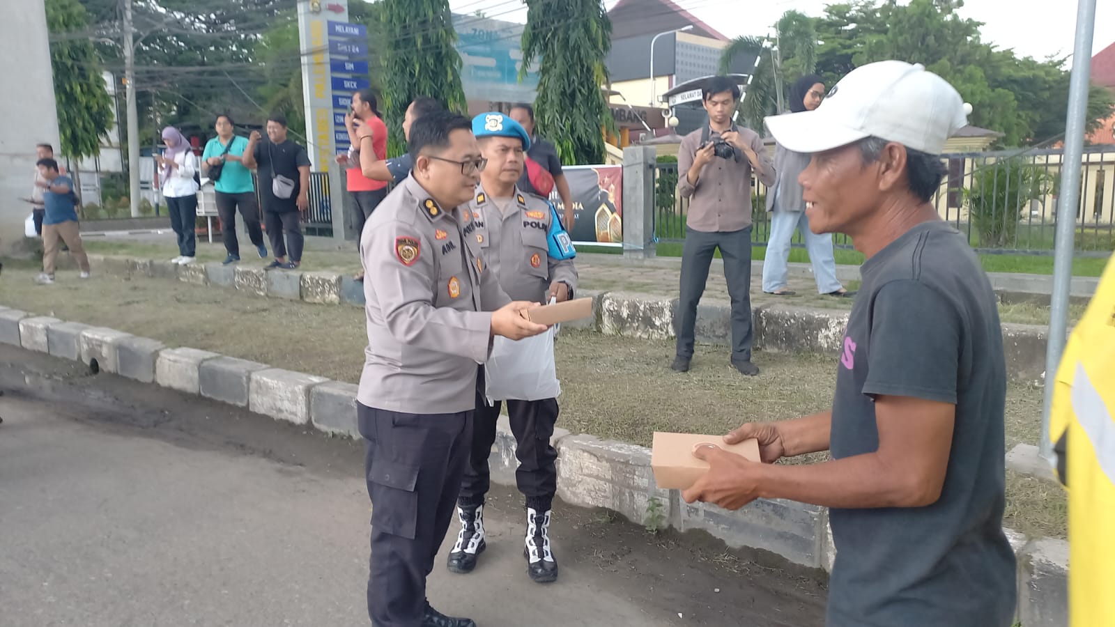 Polri melalui Polrestabes Palembang serta Media Pokja Polrestabes Palembang menyebar ratusan paket takjil kepada pejalan kaki, tukang becak dan gojek dan pengendara lainnya.