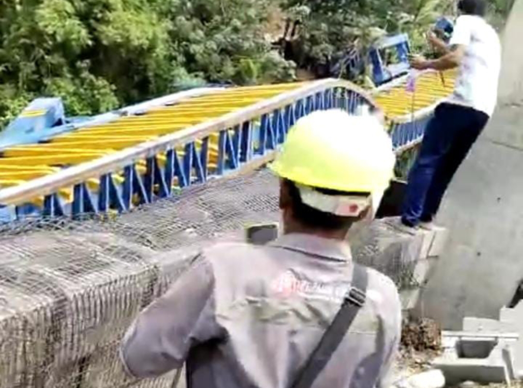 PALEMBANG|Palnews.id-Terjadi peristiwa ambruknya bangunan kontruksi Proyek Fly Over kawasan Bantaian perbatasan desa Panang Jaya -Penanggiran Kecamatan Gunung Megang Kabupaten Muara Enim pada Kamis (07/03/2024) sekitar pukul 10:30 WIB.
